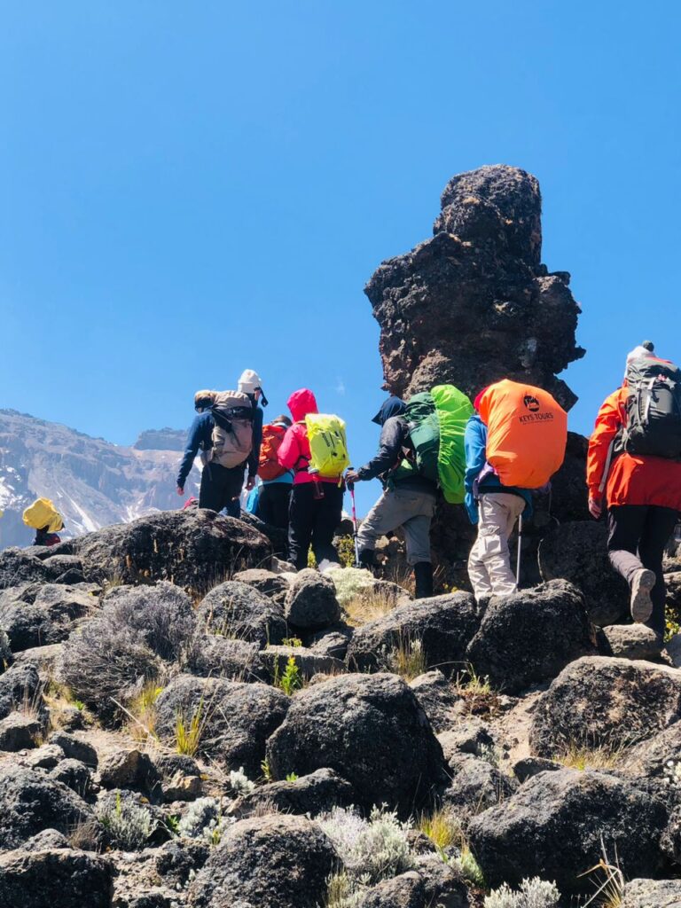 Po opuszczeniu lasu, szlak prowadzi przez teren porośnięty wrzosowiskami i skalistymi formacjami. Z każdym krokiem odsłaniają się coraz szersze panoramy, a w oddali po raz pierwszy można dostrzec masyw Kibo – najwyższy punkt Kilimandżaro.